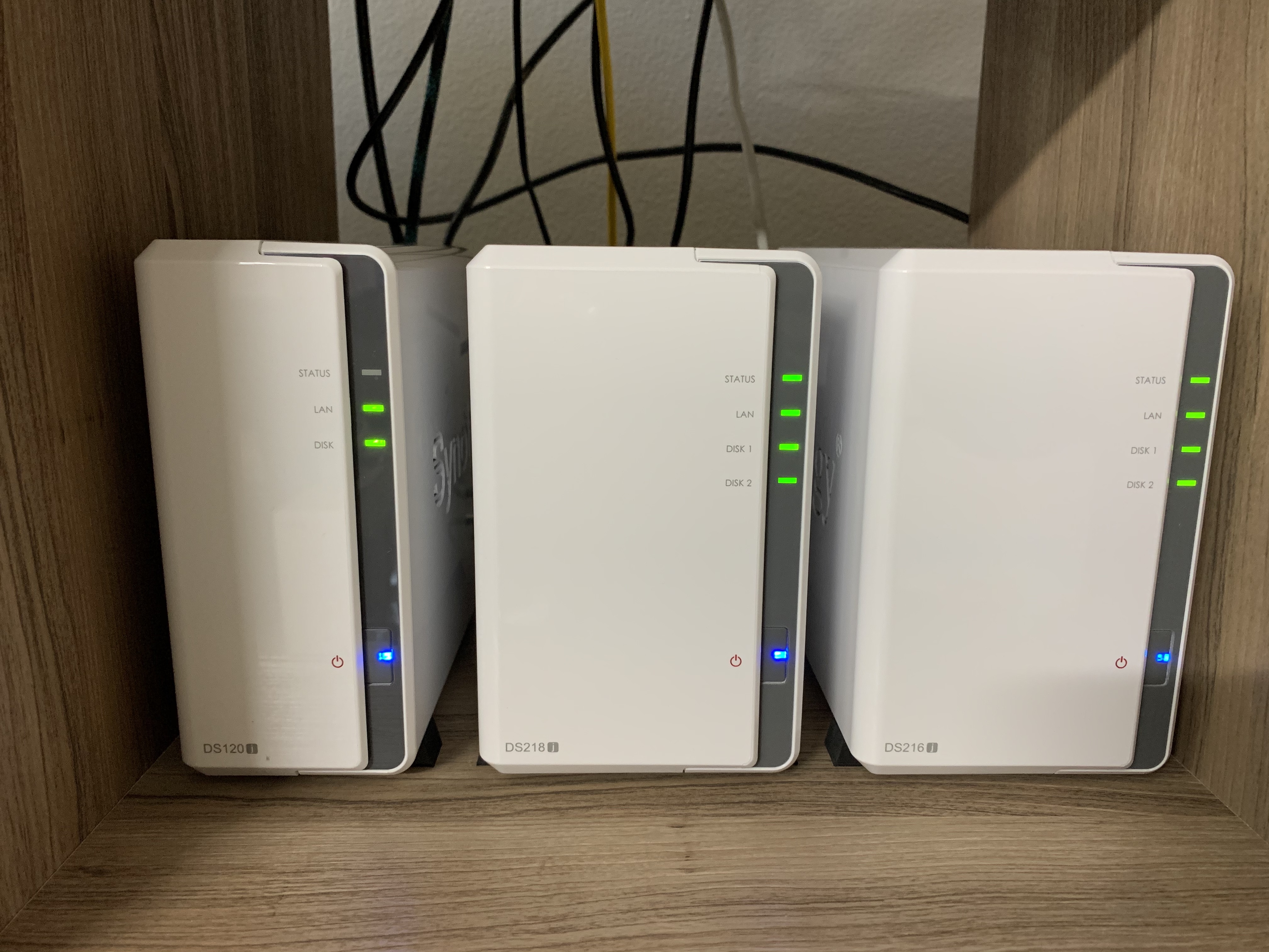 세팅 후 모습입니다. 입출력이 많은 임시 자료는 1bay NAS에 저장하고, 동영상 자료는 두번째 NAS에, 사진 자료는 세번째 NAS에 저장하고 있습니다.